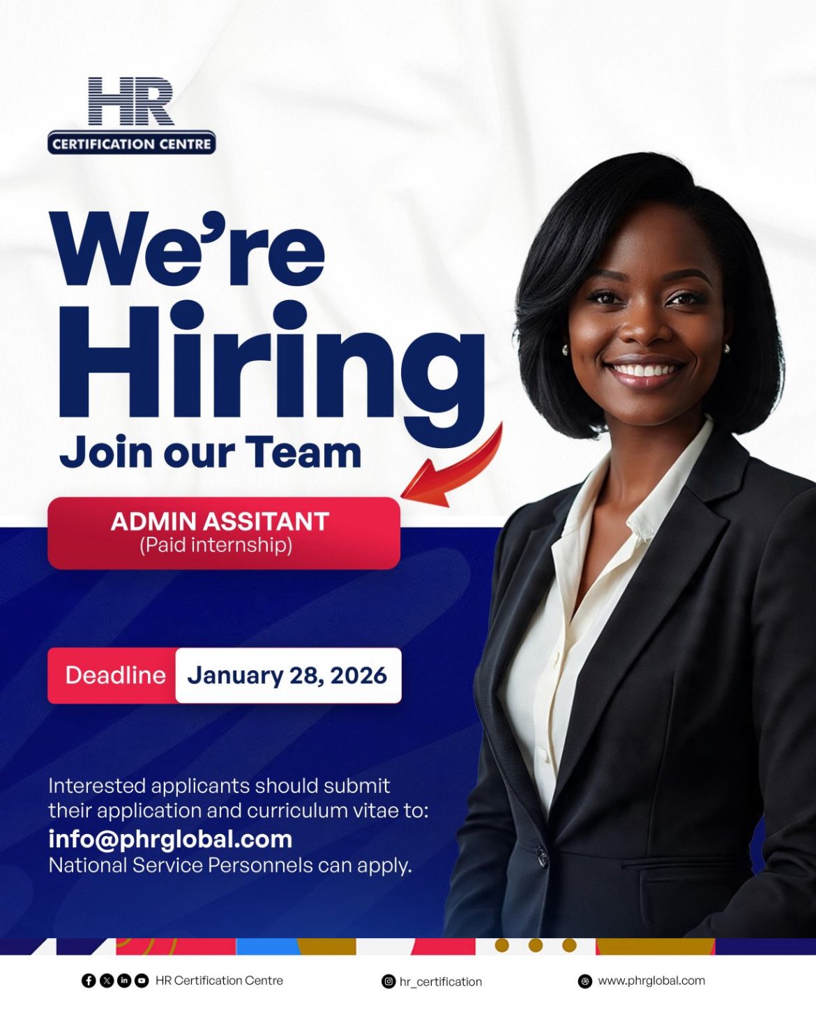 January 26, 2026 0 Paid Admin Assistant Intern HR Certification Centre is hiring a Paid Admin Assistant Intern! This is a great opportunity… Read more 1/1