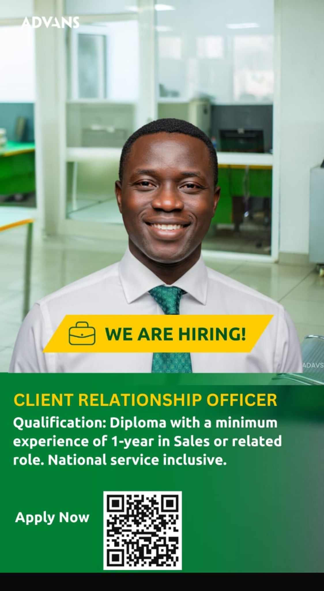 ADVANS IS HIRING! CLIENT RELATIONSHIP OFFICER Qualification: Diploma with a minimum experience of 1-year in…