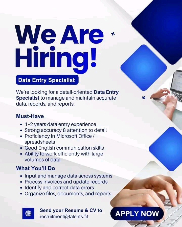 – DATA ENTRY SPECIALIST- 📍REMOTE JOB REQUIREMENTS: âś… 1-2 years experience related to data entry…
