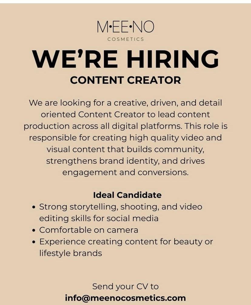 MEE•NOCOSMETICS WE’RE HIRING CONTENT CREATOR We are looking for a creative, driven, and detail oriented…