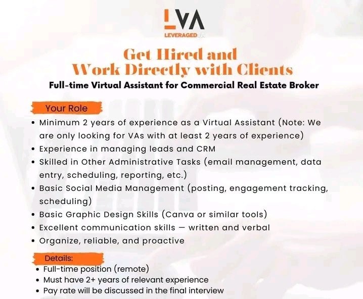 We are looking for a highly organized and detail-oriented Virtual Assistant to support a busy…