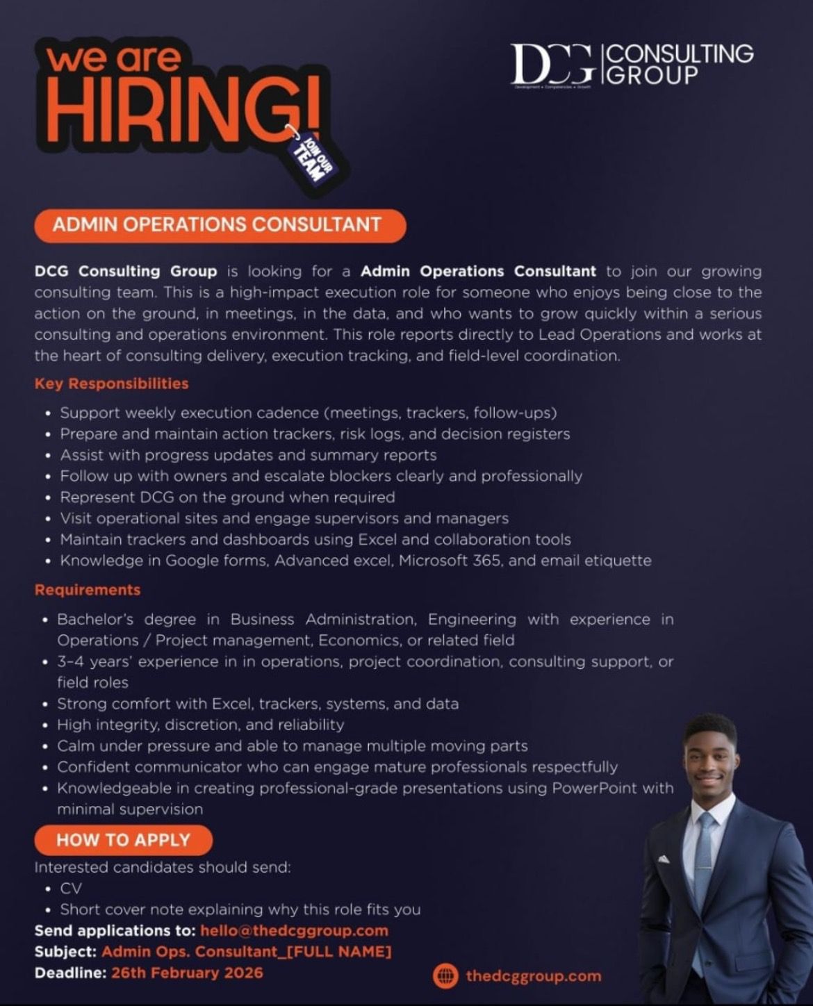 HIRING! DCGONSULTING GROUP ADMIN OPERATIONS CONSULTANT DCG Consulting Group is looking for a Admin Operations…