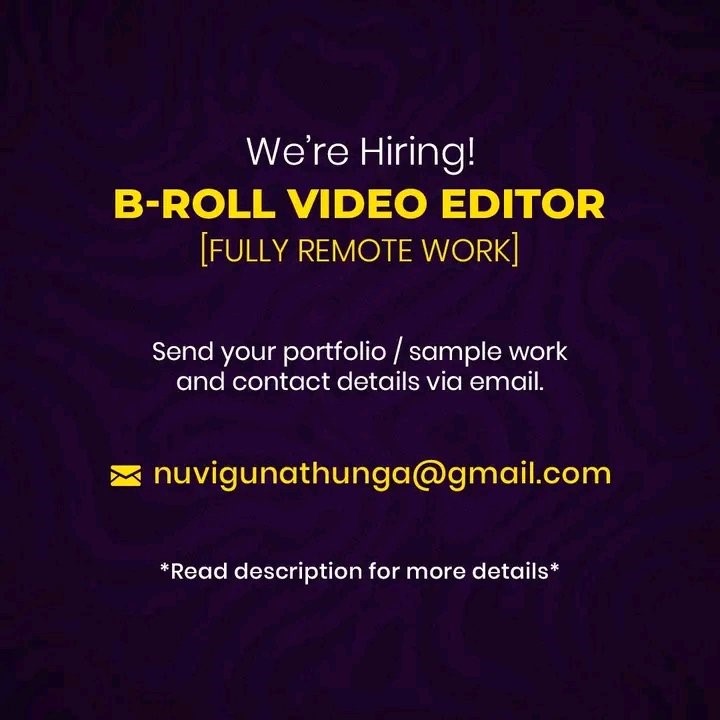 Hiring! B-ROLL VIDEO EDITOR FULLY REMOTE WORK] Send your portfolio / sample work and contact…