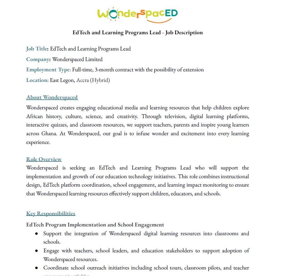 EdTech and Learning Programs Lead – Job Description Job Title: EdTech and Learning Programs Lead…
