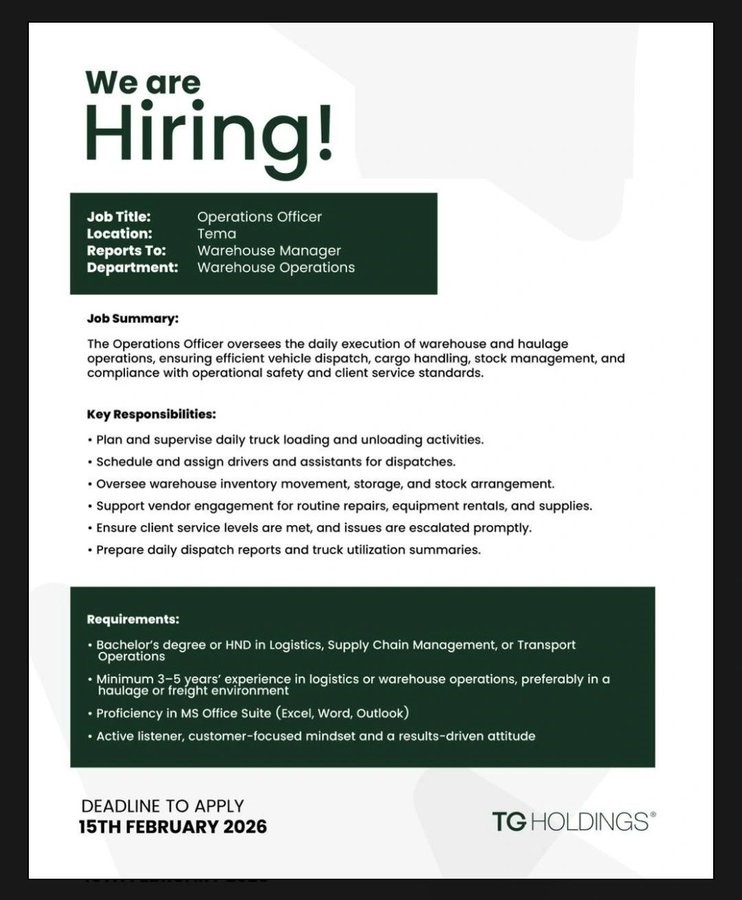 Job Summary: The Operations Officer oversees the daily execution of warehouse and haulage operations, ensuring…