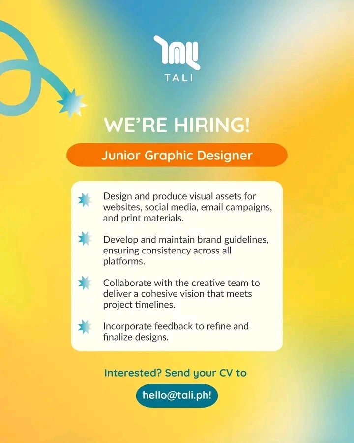 TALI Junior Graphic Designer Design and produce visual assets for websites, social media, email campaigns,…