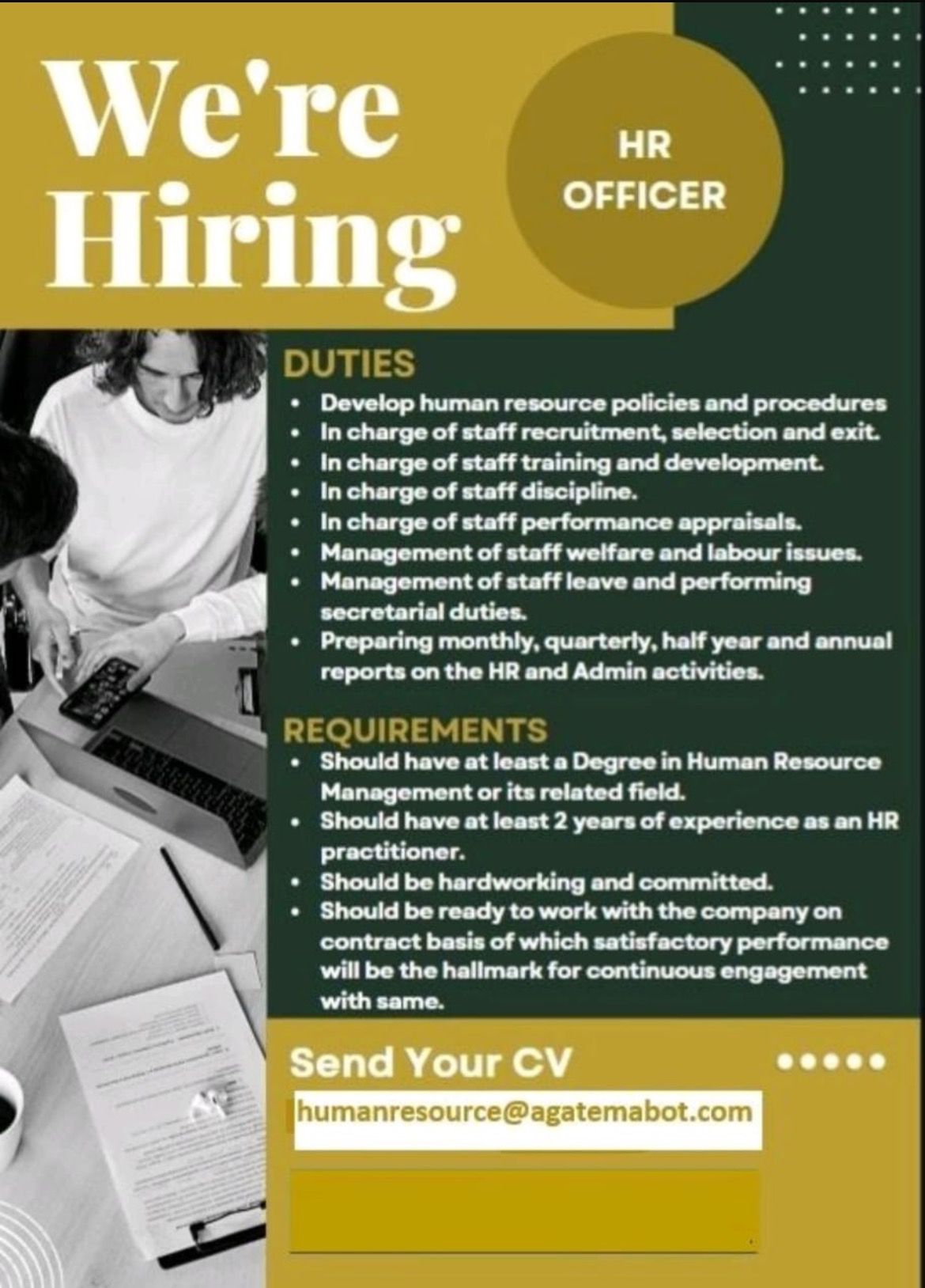 We’re Hiring HR OFFICER DUTIES . Develop human resource policies and procedures · In charge…