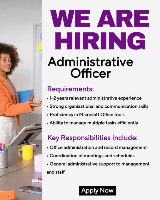 Ed Thorntons Limited is hiring an Administrative Officer – 1–2 years relevant administrative experience –…